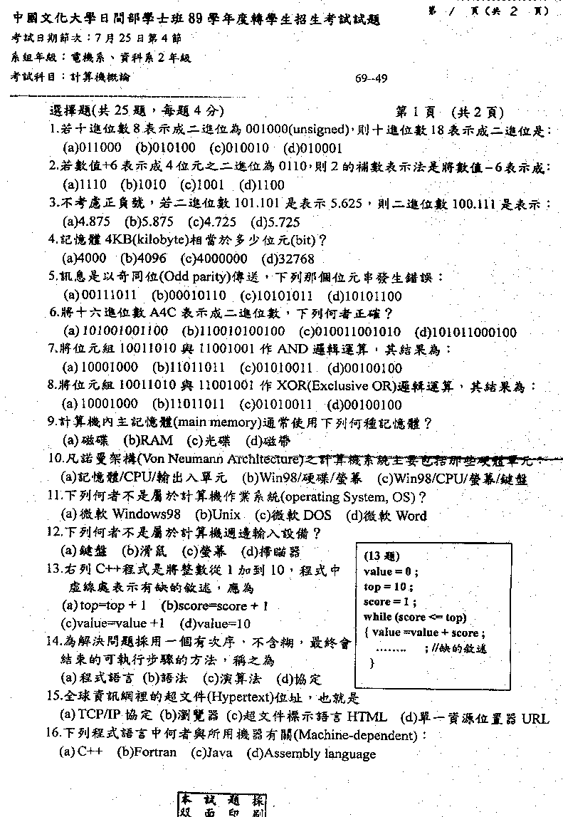 89 90 91 92 93 94 95 96 97 98 99 100 計算機概論: 100-2